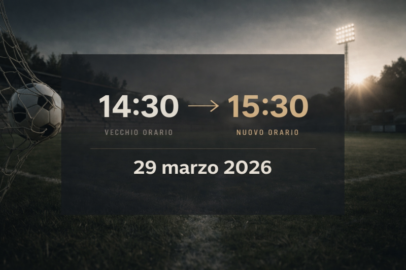 28 Mar, 2026 TORNA L’ORA LEGALE: DOMANI IN SERIE D IN CAMPO ALLE ORE 15 DALL’ECCELLENZA IN GIU’ ALLE 15.30